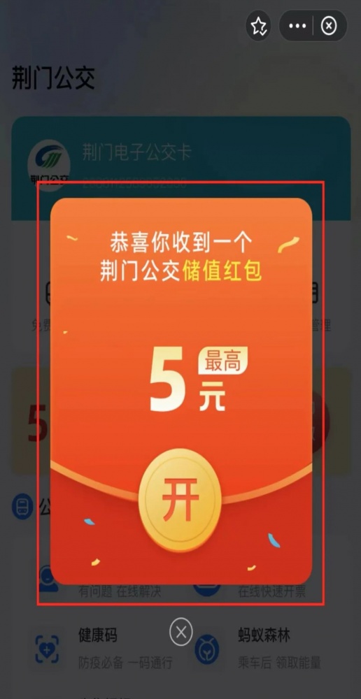 02點擊“荊門公交”,領(lǐng)取“儲值紅包"后點擊【去優(yōu)惠充值】,完成優(yōu)惠儲值