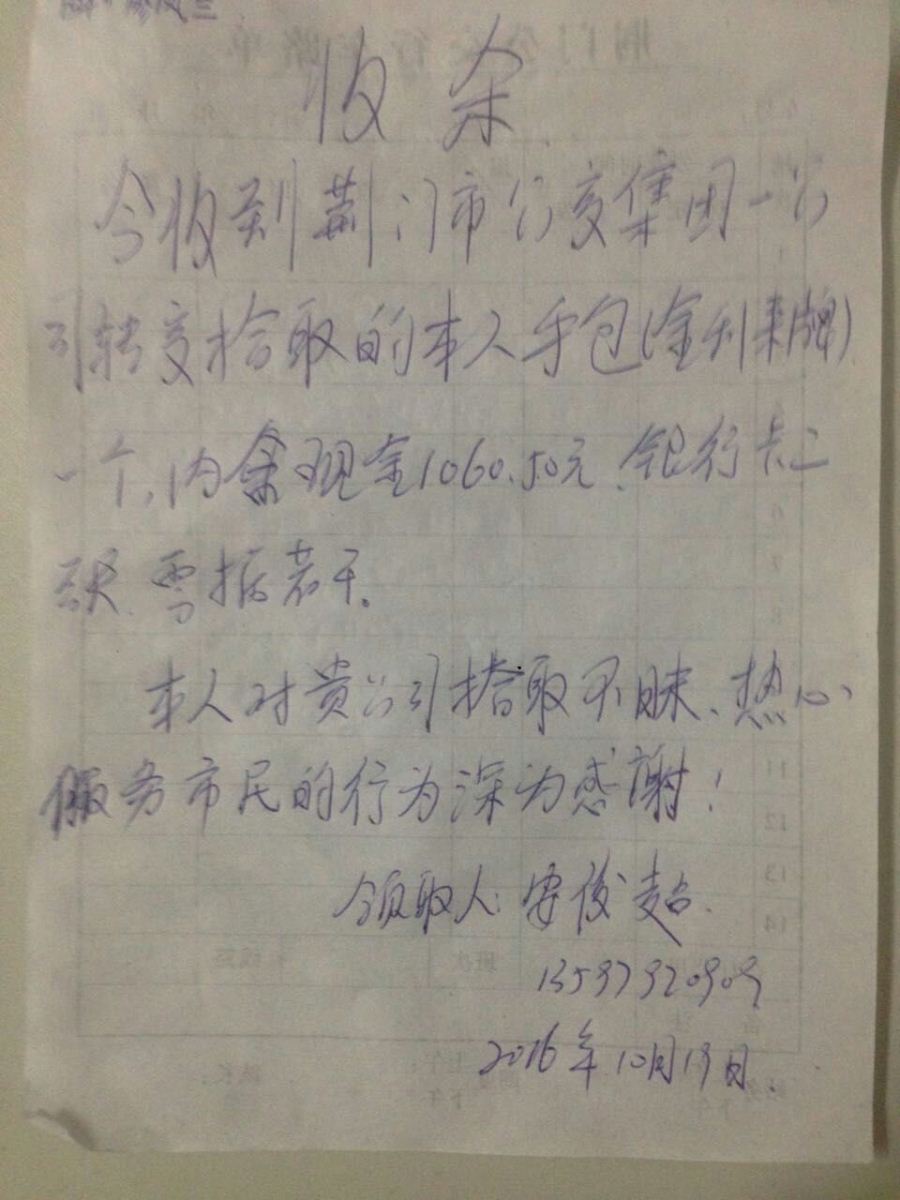 外環(huán)154駕駛員廖鳳蘭車內(nèi)拾到錢包一個,交到公司后,失主聯(lián)系核實后領走。